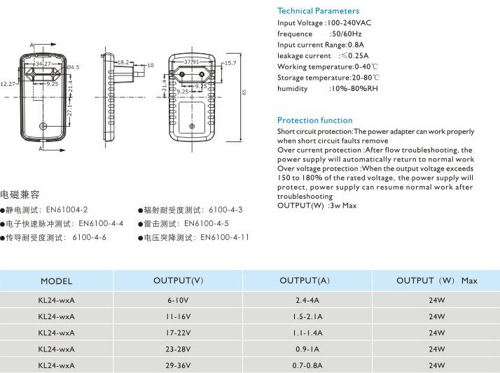 短路保護: 電源適配器在短路解除時(shí)能正常工作恢復